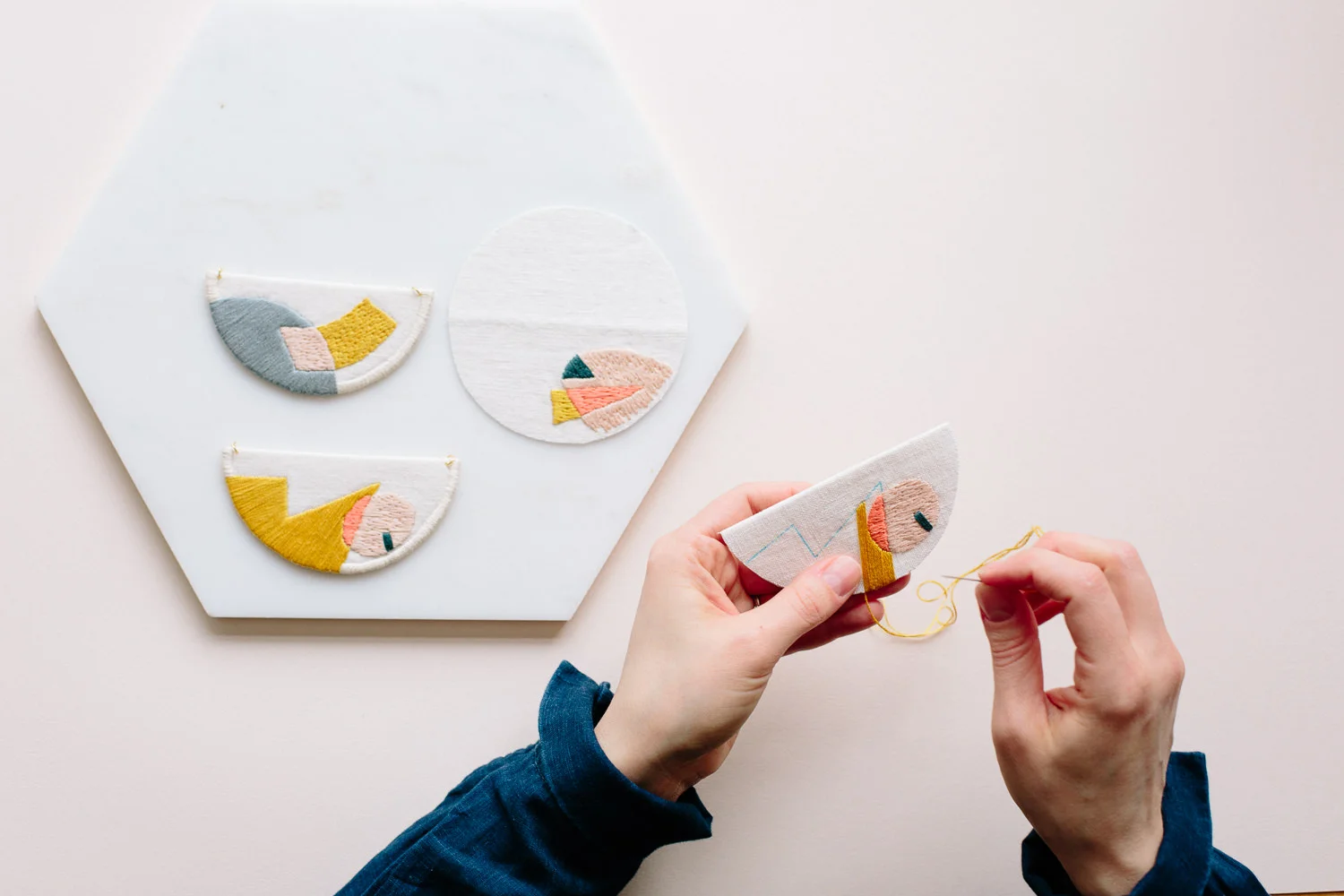 Last week I photographed Becca from Nook of the North in her beautiful studio just outside Leeds. Artist studio portraits are my favourite - a whole day of chatting, photographing and getting to know about someone's craft is a pretty special day. Not only is Becca an incredible embroiderer and spends hours making each individual piece, she is also skilled in so many other artistic mediums and I came away feeling so inspired. And desperately wanting my fringe trimmed, major fringe envy.